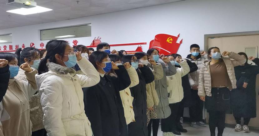 第二项由预备党员培养联系人分别介绍了培养对象在预备期的有关情况,并对其能否转正发表了自己的意见。第三项,大会采取无记名投票方式对15名预备党员进行表决,全票同意15名同志如期转为中共正式党员,雷雨广书记对支部大会做出总结并宣读支部大会的表决决议。最后由许晶晶同志带领转正党员面对党旗,庄严宣誓。