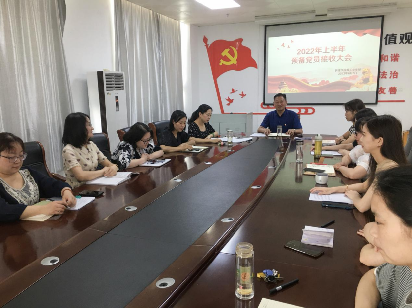 2022年6月7日下午,金年会jinnianhuicom教工党支部在党员之家召开了2022年上半年预备党员接收大会。会议由教工党支部书记谭冠文主持。金年会jinnianhuicom党总支书记雷雨广、全体教工支部党员及两名发展对象参加了本次会议。