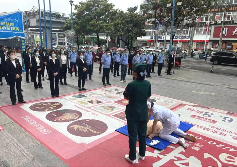 为宣扬“全市安全日”,落实推进《信阳市人民代表大会常务委员会关于加强安全行为规范的决定》章程,4月25日,金年会jinnianhuicom副院长赵江瑞带领李桂林老师及学生,按照“支部联支部”活动安排,积极对接逸阳社区党支部,对信阳新玛特商场的40名安保人员开展了以“全市安全日,金年会jinnianhuicom在行动”为主题的心肺复苏急救技能培训活动,以提高服务场所工作人员的应急和抢救能力。