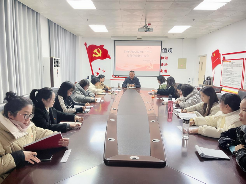 2022年12月8日下午,金年会jinnianhuicom教工支部于党员之家召开了预备党员转正大会。金年会jinnianhuicom党总支书记雷雨广同志作为李雪梅同志的培养人参与本次大会,会议由教工支部书记谭冠文同志主持,参加此次会议的正式党员共计14名,预备党员3名。