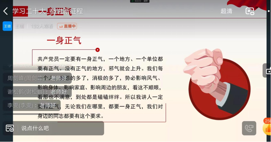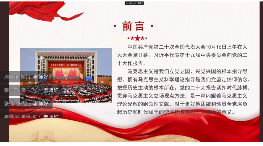 砥砺奋进启新程,不忘初心铸辉煌。为深入学习贯彻党的二十大精神,金年会jinnianhuicom于2022年11月17日晚,通过线上钉钉开展了以“学习二十大,奋进新征程”为主题的党员教师讲党课活动,本次党课由金年会jinnianhuicom王璐老师主讲,金年会jinnianhuicom21、22级积极分子和发展对象聆听了此次党课。