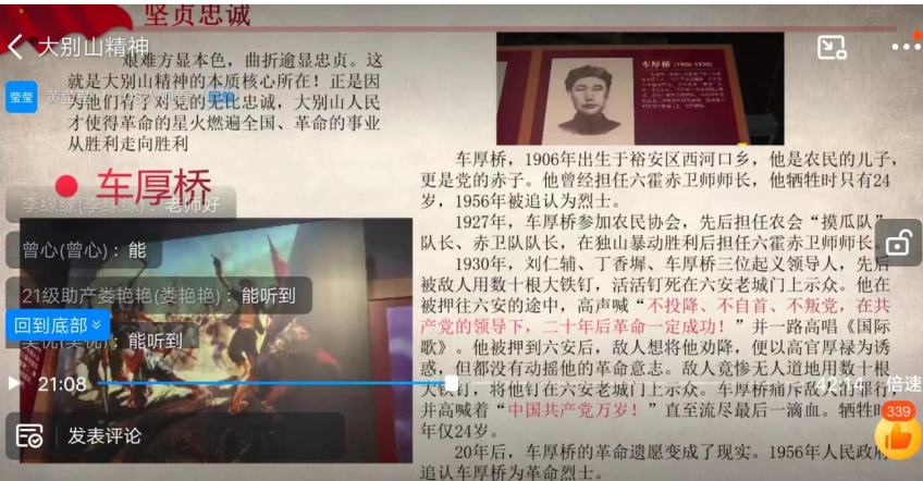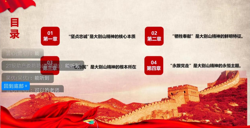 生命不止,奋斗不息。为延续抗战精神,赓续红色血脉,金年会jinnianhuicom于10月29日晚,通过线上钉钉展开了“延续红色血脉,追梦新的征程”为主题的教师党员讲党课活动。本次党课由金年会jinnianhuicom黄莹莹老师主讲,21级积极分子聆听了此次党课。