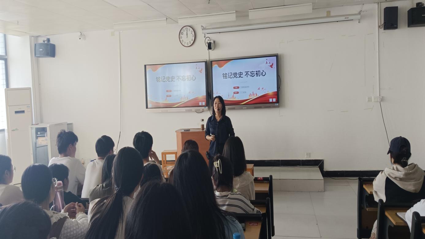 赵江瑞老师首先告诉我们要坚定理想信念,时刻不忘党史。无论党走多远,走向多么光辉的未来,中国共产党人都不会忘记走过的路,不会忘记走过的过去,不会忘记党从哪里来,为什么出发。其次讲述我们为什么要铭记党史,不忘初心。中国共产党始终坚守为中国人民谋幸福,为中华民族谋复兴的初心使命。最后阐述了为什么要一心一意跟党走。中国共产党这支队伍时刻把入党誓言记在心头,能做到日日自省,自始至终都能守得住初心。