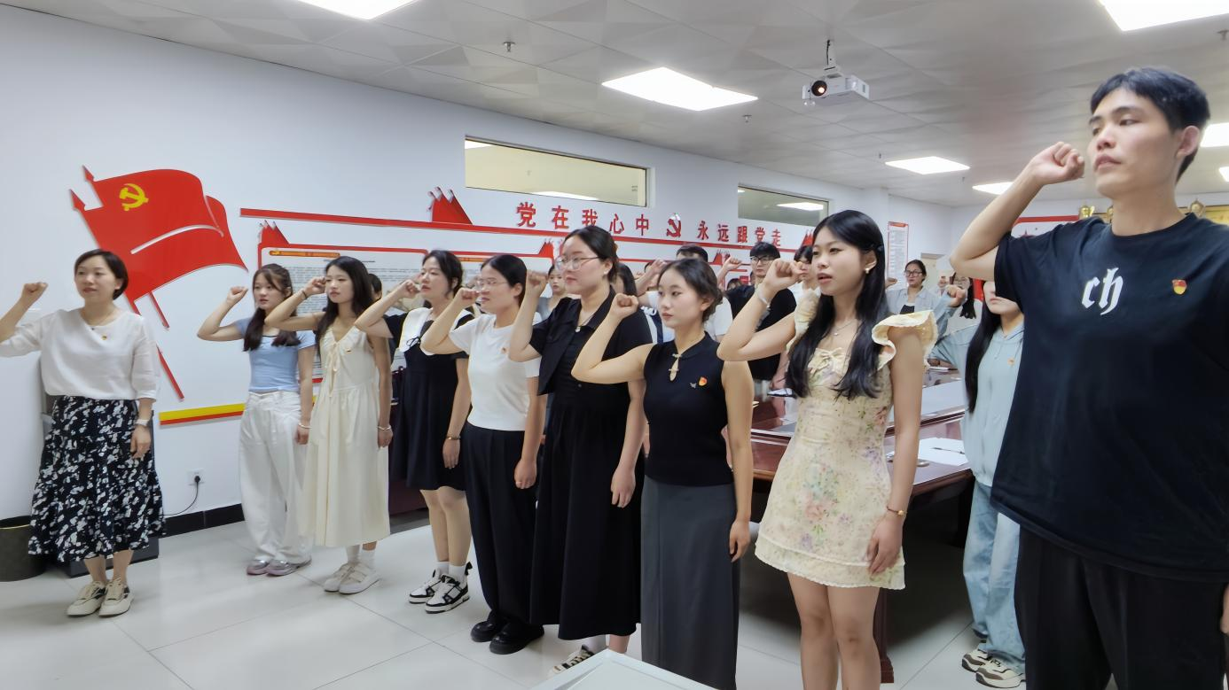 紧接着,由金年会jinnianhuicom学工支部书记李鑫汝带领全体毕业生党员重温入党誓词。