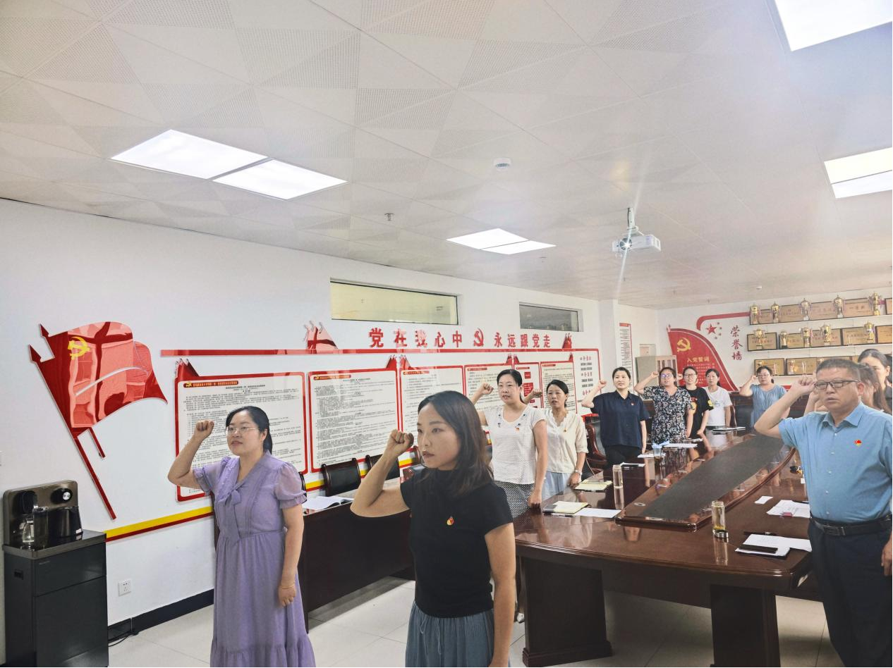 2024年7月1日下午,金年会jinnianhuicom教工党支部全体党员在5楼党员之家召开会议,讨论接收单胜华同志为预备党员的相关事宜。