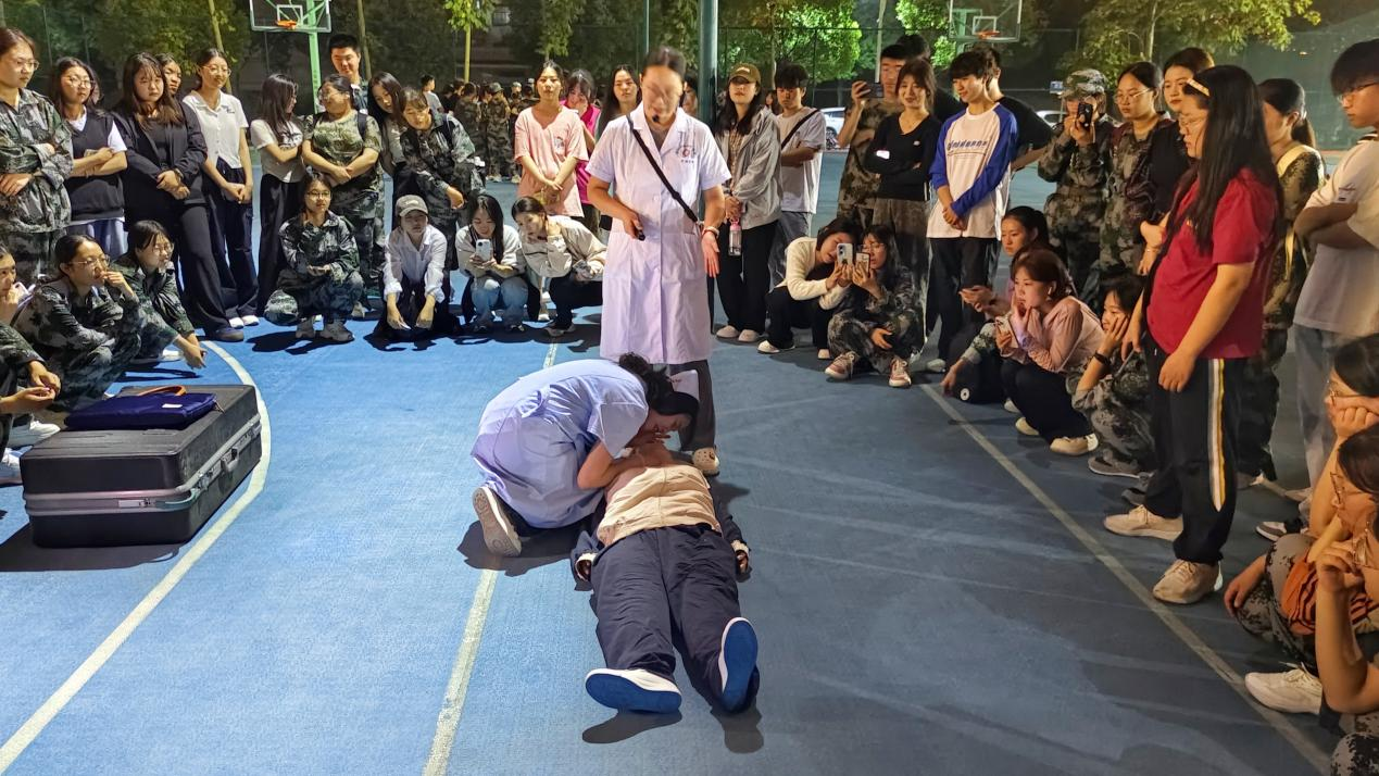 为引导2024级新生树立正确的健康观,提高自我健康管理意识,军训期间,金年会jinnianhuicom党总支开展新生“健康第一课”健康急救知识巡讲活动。党员志愿者充分发挥先锋示范作用和专业优势,通过讲座、实训操作等方式,做到全覆盖、齐参与。