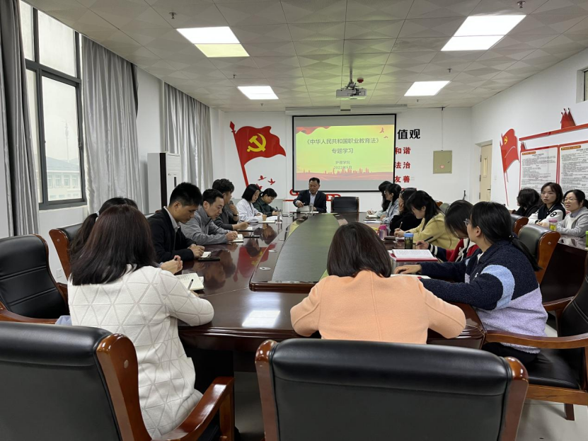 5月11日下午,结合职教活动周活动,金年会jinnianhuicom积极组织全体教职工对新职教法进行了专题学习。本次学习活动由金年会jinnianhuicom党总支书记雷雨广主持,方明月副院长领学。