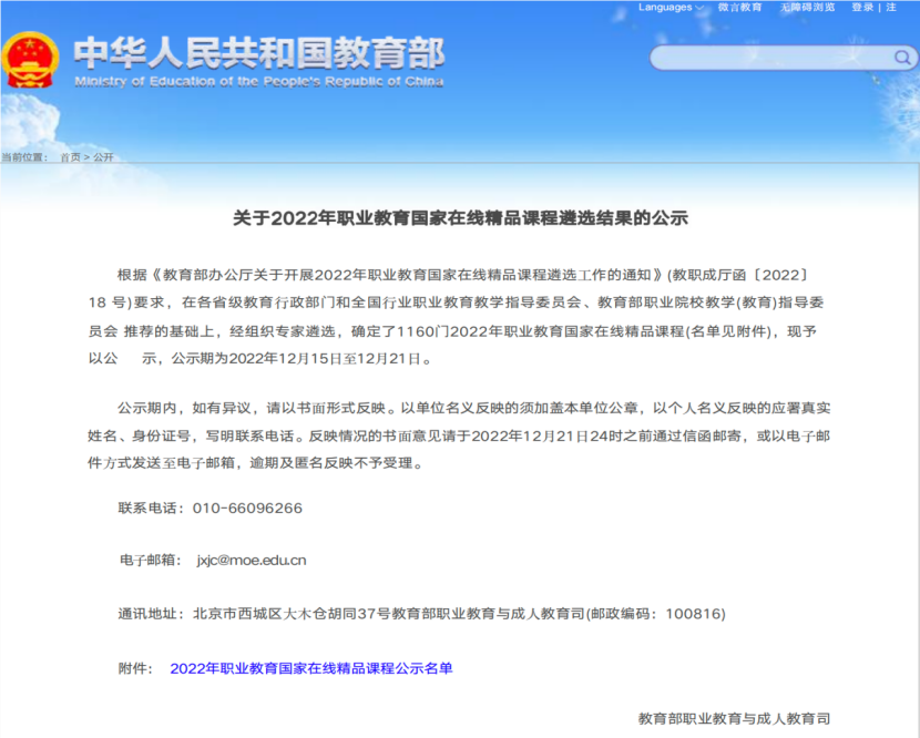 近年来,学院一直致力于推动信息技术与教育教学的深度融合,鼓励、支持教师投身在线精品课程建设,依托数字化课程资源开展线上线下混合式教学。此次成功入选国家级在线精品课程,是对金年会资源建设、课程建设、教学改革等方面成果的集中体现,也是学院推进“双高”专业建设的重要标志性成果。