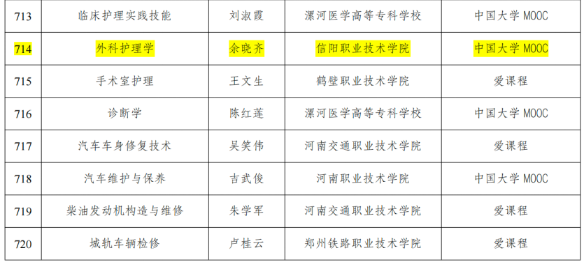 近日,教育部发布了《关于2022年职业教育国家在线精品课程遴选结果的公示》,金年会jinnianhuicom余晓齐教授负责的《外科护理学》成功获批为国家级在线精品课程,成为金年会jinnianhuicom首门“国精课”,实现了金年会在此项目上的历史性突破。