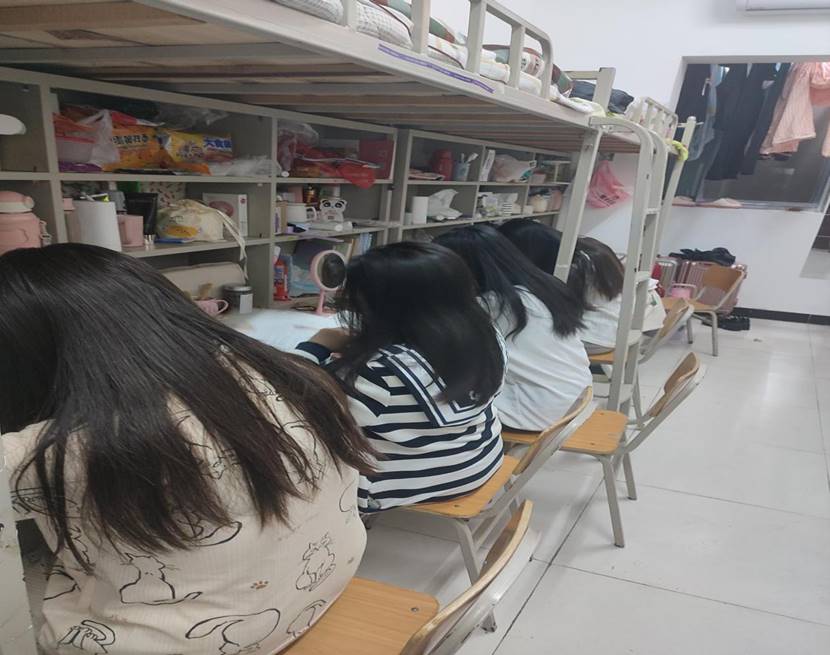 我们宿舍成员共六人,宿舍全体成员自觉遵守住宿安排和管理规定,自觉遵守学生公寓良好的生活秩序和安全管理规定。我们宿舍六人每天都积极打扫宿舍卫生并保持非常干净每周系宿管委两次检查都会拍照上传,做好宿舍内务,力争在评选“文明宿舍”取得好成果。