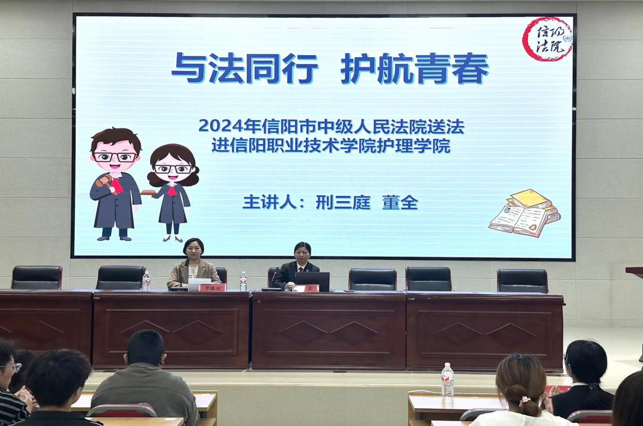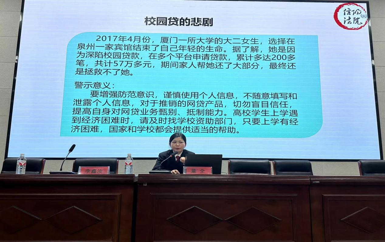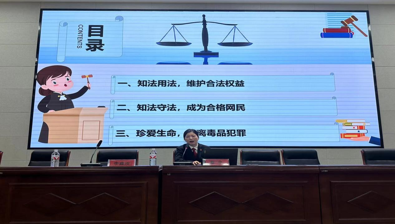 为认真落实教育系统“八五”普法规划,进一步提升广大青少年法治观念和法律素养,强化自觉守法意识,增强自我保护能力。4月17日下午,金年会jinnianhuicom特别邀请到了信阳市中级人民法院刑三庭副庭长董全在行知讲堂举行了“与法同行、护航青春”法制教育专题讲座。