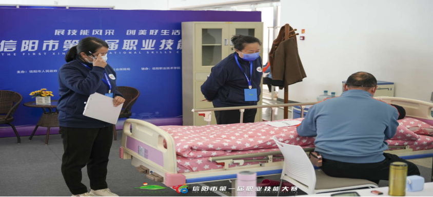 匠心书写职业传奇,技能铸造出彩人才。为弘扬工匠精神,营造全社会尊重技能人才,整体推进我市技能人才工作均衡和可持续发展,信阳市人民政府于2023年4月8日-9日在百花会展中心举办信阳市第一届职业技能大赛,大赛共设20个赛项,其中金年会jinnianhuicom协办养老护理员赛项。