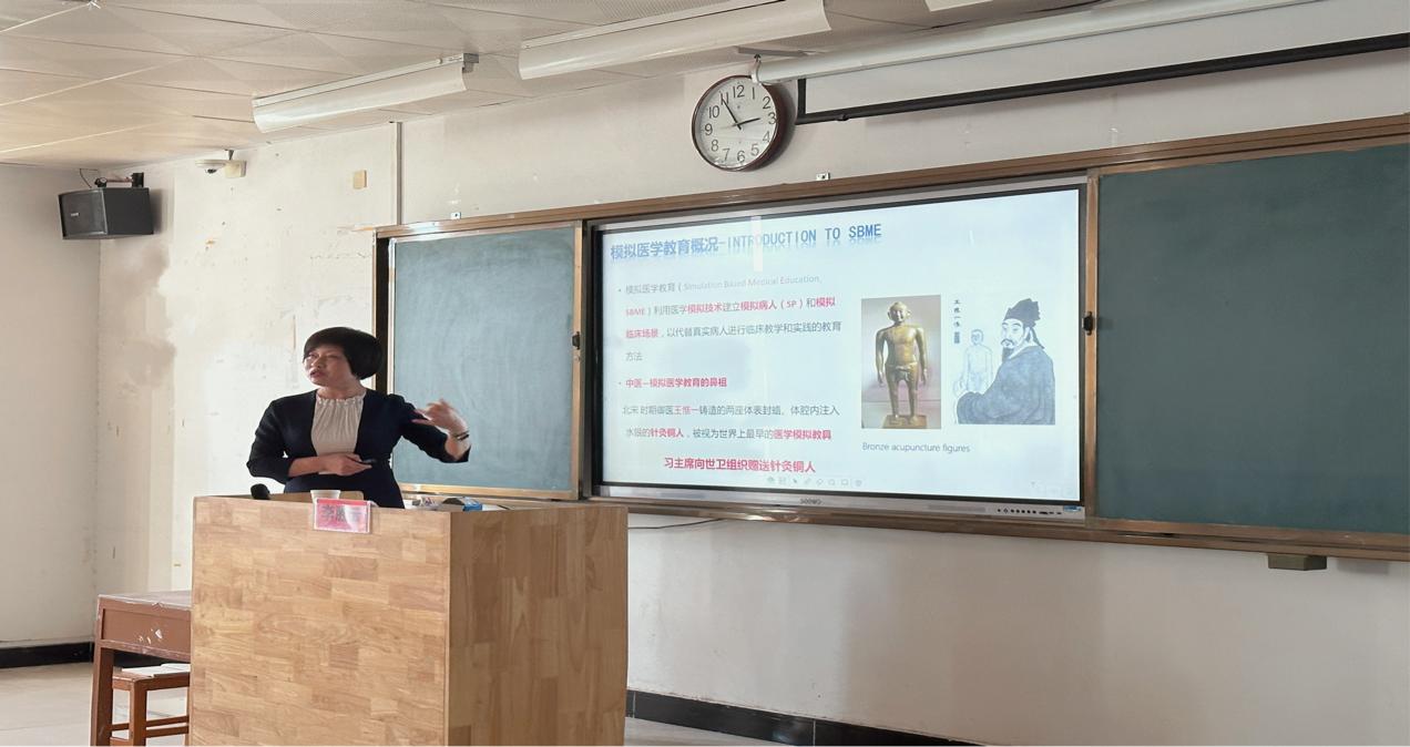 李胜云主任结合护理临床实际工作从模拟医学教育概况、情境模拟教学设计、情境模拟教学案例演示、模拟医学教育科研方向等方面分享了自己的经验和观点。李主任指出学科建设是高校建设和发展的核心,是整体办学实力、学术地位和核心竞争力的体现。她重点解读了新时代医学教育的新特点背景下,护理学发展的思考与建议。她强调要以科研带动创新型人才培养,在科研过程中提高教学水平。整场报告会主题鲜明、重点突出,为金年会jinnianhuicom学子们带来生动的一课。