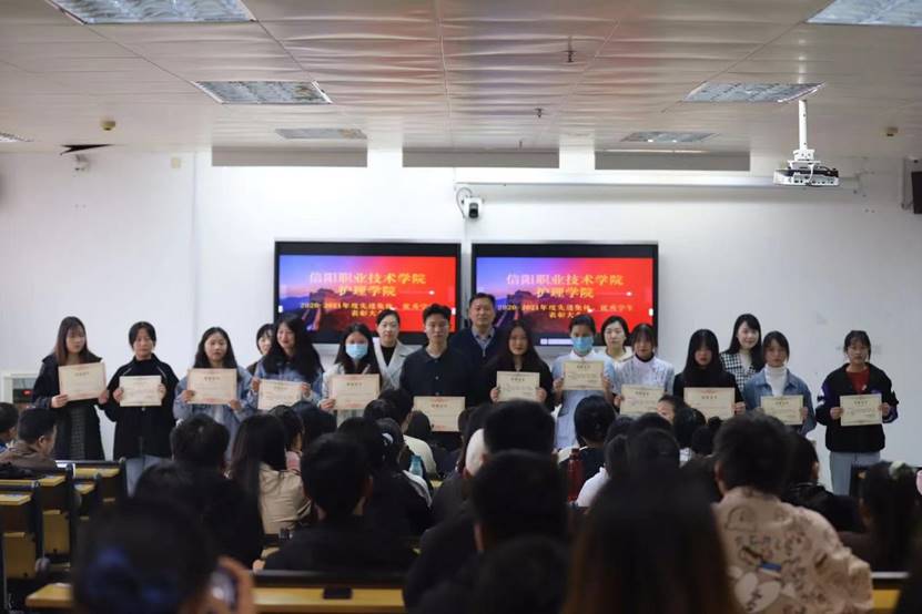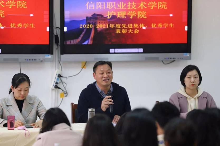 2021年10月19日下午,金年会在护理大楼西501隆重召开“2020-2021年度文明班级、先进班集体、三好学生、优秀学生干部、文明学生表彰大会”。金年会jinnianhuicom党总支书记雷雨广,副书记李鑫汝,副院长谭冠文、赵江瑞及各班辅导员参加了本次活动,会议由副书记朱小静主持。