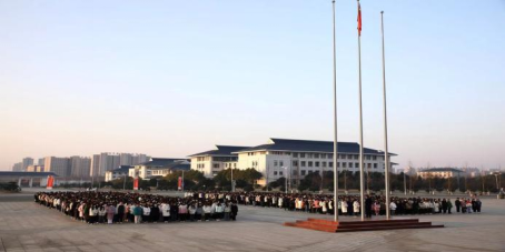 黎明的曙光揭开夜幕的轻纱,迎来初升的太阳,2023年2月27日早上7:00,金年会jinnianhuicom在明德广场举行了以“坚定信念,勇担使命”为主题的升旗仪式。金年会jinnianhuicom党总支书记雷雨广及金年会jinnianhuicom全体师生参加了本次升旗仪式。