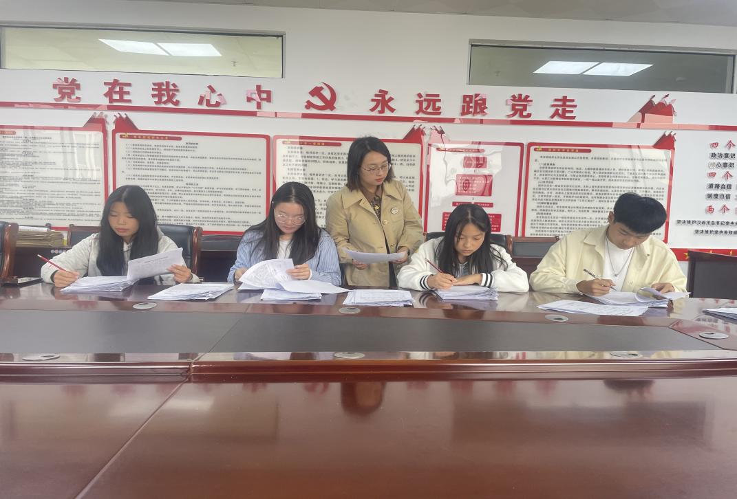 学院资助专干黄莹莹带领学生审核、修改奖助学金材料