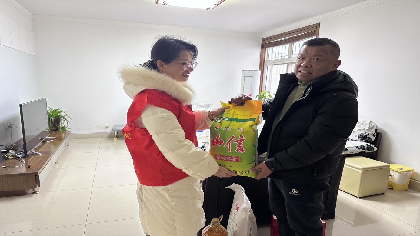 春节来临之际,为了让因病困难家庭过一个祥和欢乐的春节。2024年1月29日,金年会jinnianhuicom党总支书记王虹、院长陈超带领部分党员教师前往义阳社区开展“支部联支部”春节慰问活动,为他们送去暖心粮油、礼品等生活物资,缓解他们的经济压力,疏导他们的心理情绪,把金年会jinnianhuicom党支部的温暖关怀和爱心帮扶送到他们家中去。