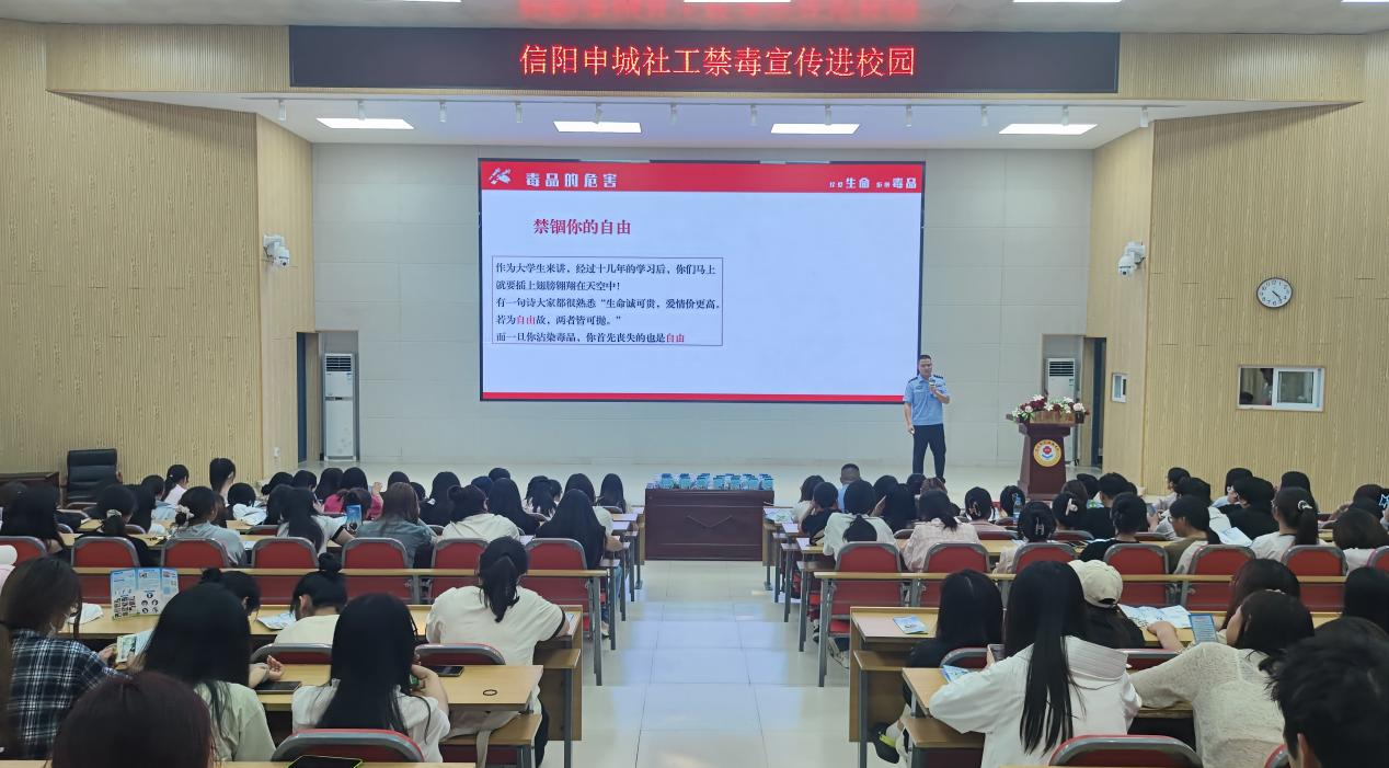 本次讲座由信阳市强制隔离戒毒所管理和教育科负责人王向勇科长为大家宣讲。王科长向大家认真讲解了《中华人民共和国禁毒法》和《戒毒条例》等相关法律法规,以及如何识别毒品、拒绝毒品,告诫大家对待毒品要有警觉戒备意识,提高对诱惑的警惕性。王科长还结合真实案例现场展示新型禁毒模型,将毒品预防教育转化为立体的、可视化的互动场景,使同学们深刻认识到吸毒对个人、家庭、社会的严重危害。